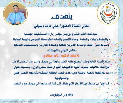 خالص التهانى لمعالى الاستاذ الدكتور محمد ناجى