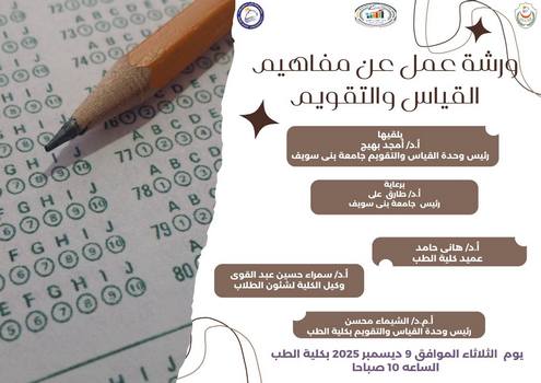 أُقيمت الورشة اليوم الثلاثاء الموافق 9 ديسمبر 2025 بكلية الطب البشري، في تمام الساعة 10 صباحًا.
