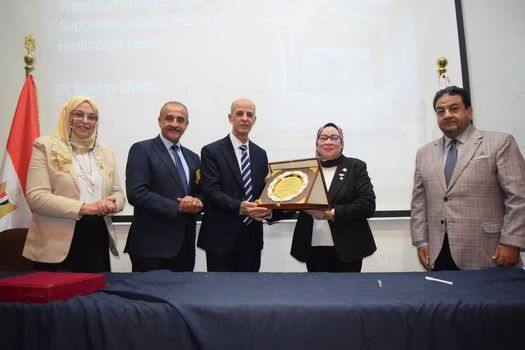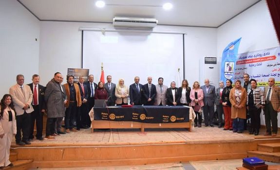 مع لجنة الصحة النفسية والمجتمعية بنادي الروتاري، وذلك بحضور الدكتور هاني حامد، عميد كلية الطب البشري ورئيس مجلس إدارة المستشفيات الجامعية، والدكتور حسام فرحات، محافظ نادي الروتاري، والدكتور عبد اللطيف هشام، عميد كلية الزراعة، والدكتورة هبة عبد العظيم، رئيس فرع النادي ببني سويف، والأستاذ محمد سليم، أمين عام الجامعة، إلى جانب لفيف من أعضاء هيئة التدريس وأعضاء النادي.