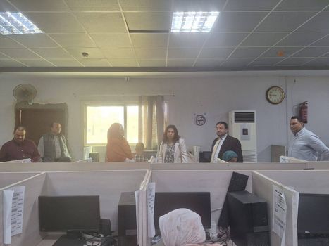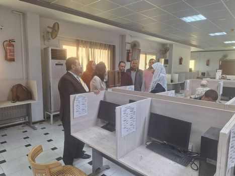 جولة تفقدية موسعة داخل لجان امتحانات الماجستير بكلية الطب البشري، يرافقه الأستاذة الدكتورة وسام اسماعيل رئيس الكنترول بالدراسات العليا بالكلية